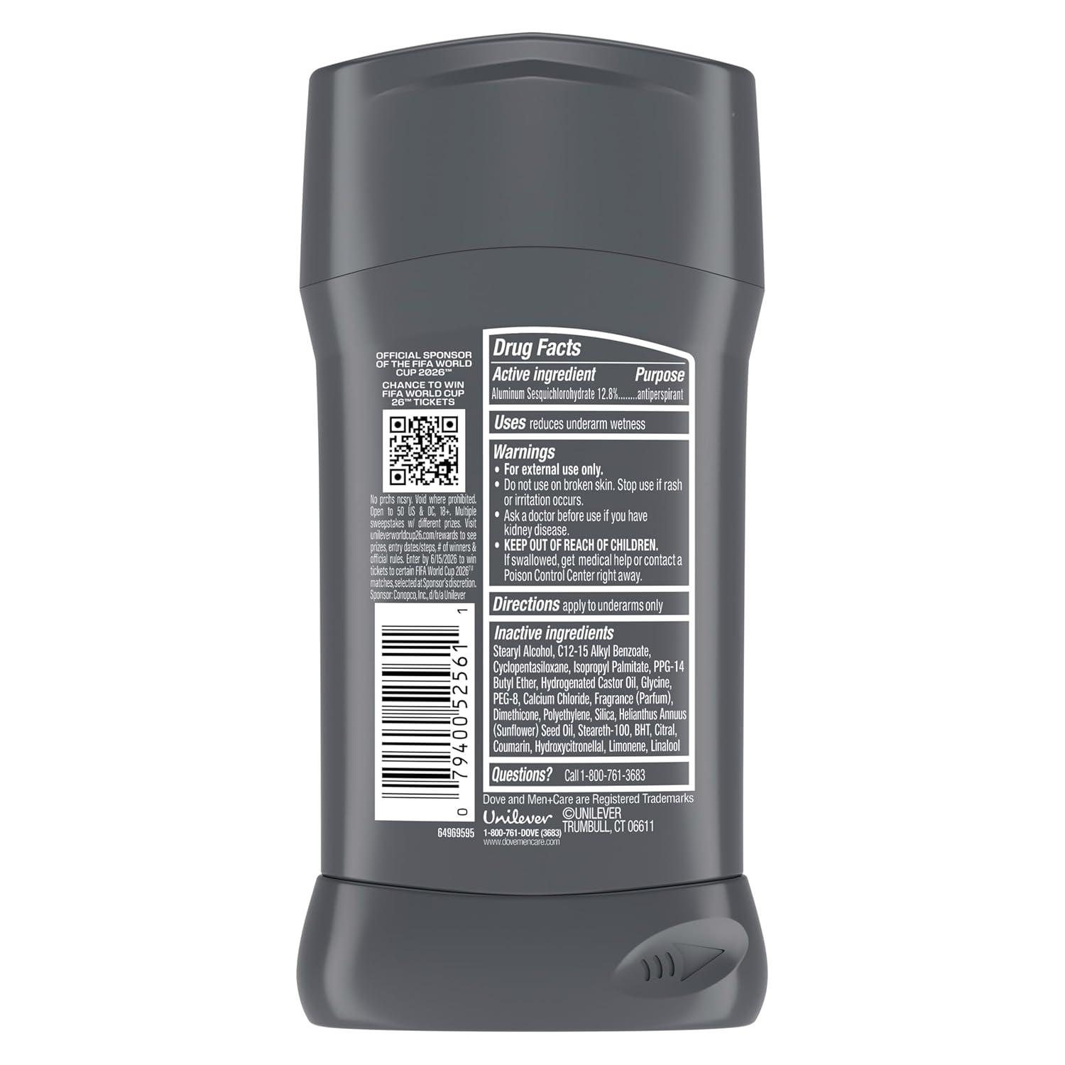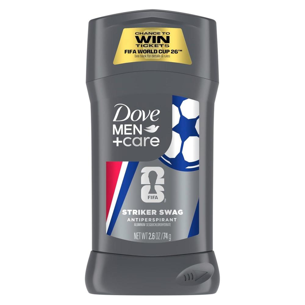 Dove Men+Care Striker Swag Antiperspirant Stick combines Dove Men’s superior care and protection with a Limited Edition design and fragrance inspired by World Cup 26. This product offers 72-hour protection, effectively neutralizing sweat and odor-causing bacteria while delivering superior care with added moisturizer. Our Striker Swag variant provides a scent that keeps you feeling fresh and revitalized throughout the day, making it the perfect choice for those who seek both functionality and luxury in their daily routine. Our dermatologist-tested formula is certified cruelty-free by PETA, ensuring that no animal testing is involved in the production process. To use, simply apply the antiperspirant stick to your underarms for immediate freshness and long-lasting protection. For optimal results, incorporate this product into your daily regimen alongside other Dove Men+Care offerings, such as our body washes and shampoos, to experience the full benefits of our superior care line. By incorporating our deodorant stick into your regimen, alongside other Dove Men+Care products, you can achieve a comprehensive care routine that enhances your skin health and boosts your confidence. This World Cup, upgrade to pre-game care that truly goes the distance.